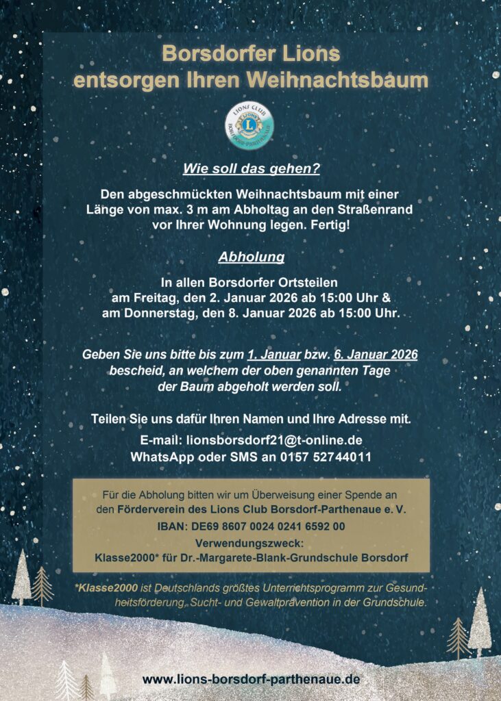 Borsdorfer Lions entsorgen Ihren Weihnachtsbaum