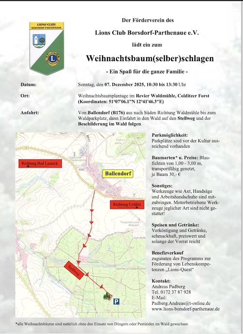 Alle Jahre wieder: Borsdorfer Lions laden ein zum Weihnachtsbaum(selber)schlagen.